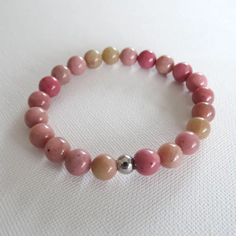 Materiais: Pedras naturais de Rodonite de 8 mm, conta em aço inoxidável.